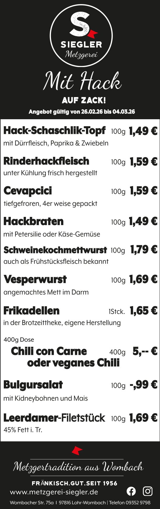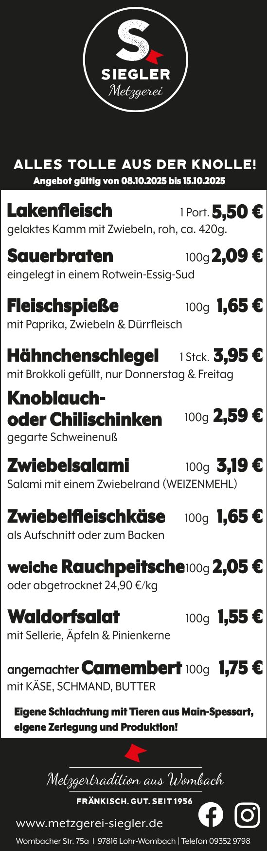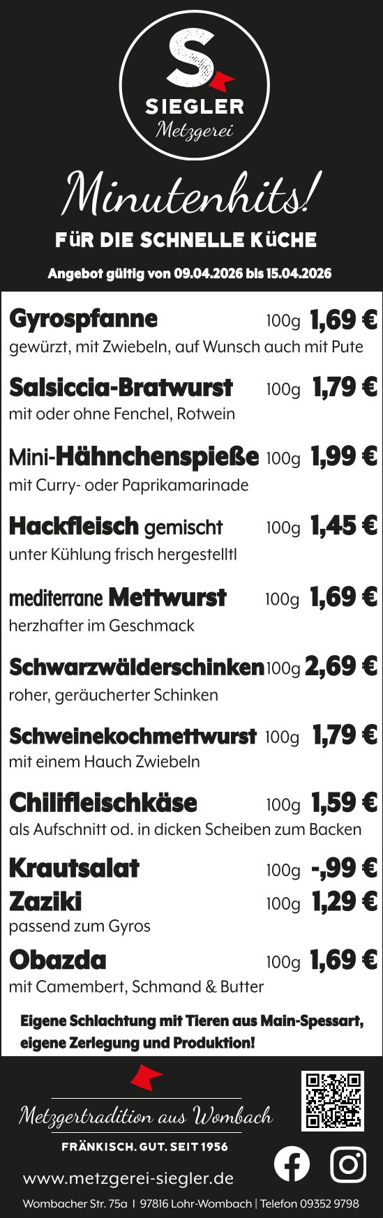 Bereits seit drei Generationen steht der Name Siegler für Fleisch- und Wurstwaren bester Qualität aus der Region.